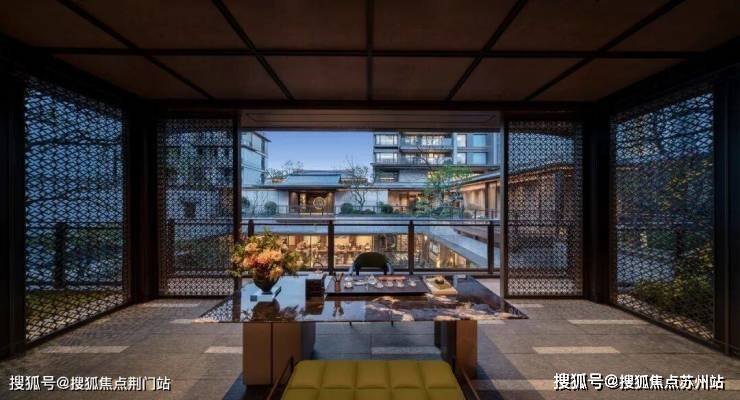 飞鸟屋脊挑檐的高层也自成其景✿✿✿ღ,四面大面铝板+大面宽玻璃✿✿✿ღ,以金线勾边✿✿✿ღ,极具辨识度✿✿✿ღ,如高台楼阁静立园中✿✿✿ღ,进一步升华了宸云的中式禅境✿✿✿ღ。